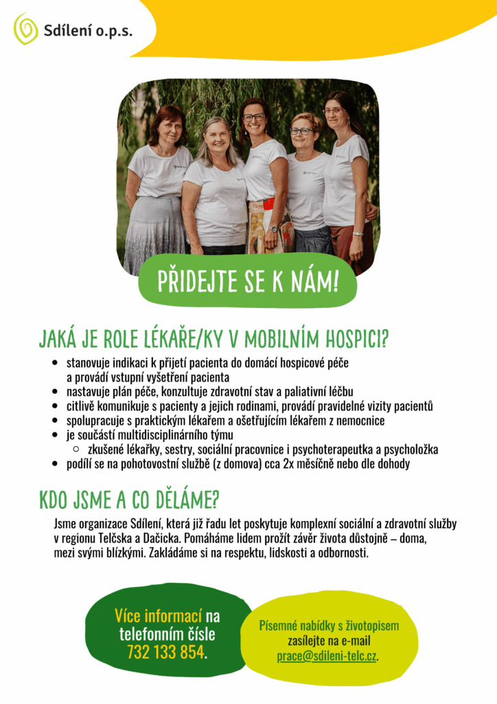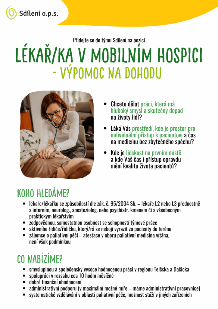 Hledáme lékaře/ku do mobilního hospice – výpomoc na dohodu